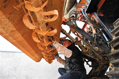 2月25日,在湖南省益阳市赫山区农田谋士水稻专业合作社,工作人员在检修农机。