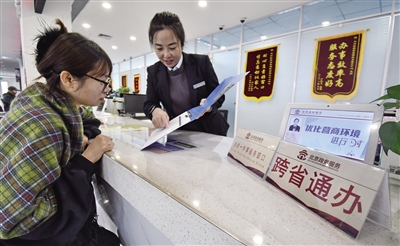近年来,北京市大兴区庞各庄镇政务服务中心主动深化“放管服”改革,按照“党务、政务、服务”三融合的工作理念,先后建设了46个村和10个社区的村社级政务服务站,打造了“一刻钟政务服务圈”城镇乡村全覆盖。他们用“最多跑一次”的工作理念为企业和群众提供了便利化、精准化、个性化的衍生服务,累计为群众和企业节省跑腿里程约12万公里。 新华社记者 李欣摄