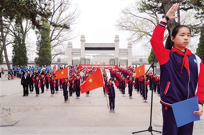 青山埋忠骨,清明祭英烈。4月2日,灵丘县育英小学组织部分学生来到平型关烈士陵园开展追思祭扫活动,随后来到光荣院聆听老战士讲述革命故事。 本报记者 张占兵 通讯员 张宗昌摄
