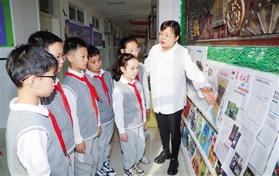 “大同黄花向花城人民带去春天的问候,也向五湖四海的人们发出邀请……”是日上午,记者在大同大学附属小学看到,一名学生化身新闻播报员,为同学们播报《大同日报》《大同晚报》上的热点新闻,另一名同学正与同学们分享“我与报纸的故事”,讲述新闻媒体在个人成长中的重要作用。在校园文化角,学生们手捧飘着墨香的报纸,一边阅读、一边相互讨论;老师与同学们就近期的热点新闻、精彩故事相互交流,帮助同学们开阔思维、提升阅读能力。