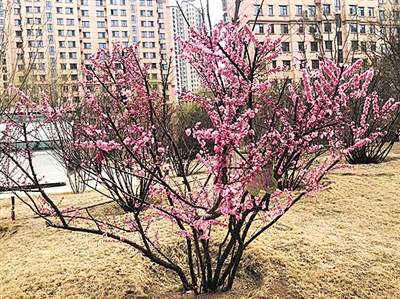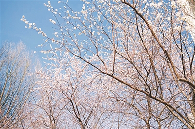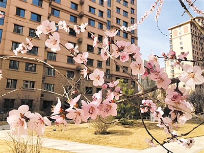 漫步在锦瑞文源小区,是满满的诗意。简洁大气的居民楼被粉色、白色的花丛包围。洁白的杏花、粉红的桃花肆意绽放,散发出淡淡的香气,吸引居民拍照留影。有老人牵着孩童的手,慢慢踱步赏景,偶有调皮的花枝伸向人行道,似是向人招手。
