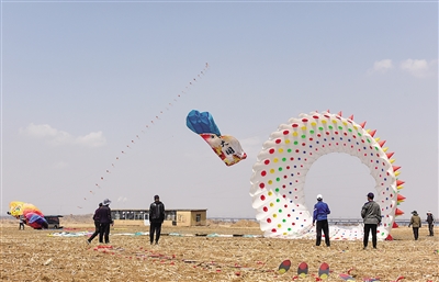 图为大同市第九届风筝放飞活动现场,正在进行巨型风筝表演。 本报记者 于宏摄