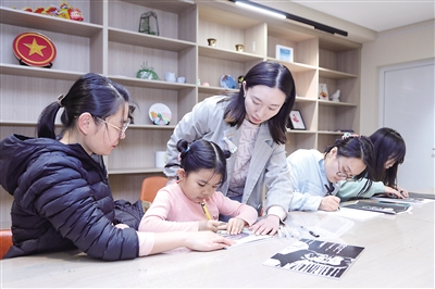 4月4日,市美术馆以“缅怀革命先烈 传承爱国精神”为主题开展版画制作体验课活动,让小朋友们在缅怀英烈的同时,感受版画艺术魅力。图为老师指导小朋友制作版画。 本报记者 韩堃摄