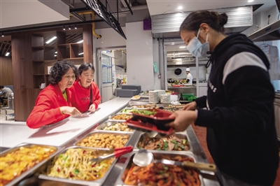 4月12日,宁波市江北区大闸社区老年居民在共享食堂内点餐。近年来,浙江宁波市江北区以破解老年人“吃饭难”为突破口,打造“老年食堂+共享餐厅+助餐点”的“15分钟”助餐服务圈,给老年人群体提供更好的助餐服务。目前,宁波市江北区共建成标准化老年食堂19个、共享餐厅13家,日均为1500人次的老年人提供堂食与送餐服务。 新华社记者 江汉摄