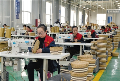 4月21日,广灵县巧娘宫手工编织专业合作社编织车间内,社员们正在用缝纫机加工出口荷兰的外贸订单产品。随着编织产品在国内外越来越受到消费者的青睐,合作社订单量逐渐增加。今年合作社投资80余万元购置打绳机、缝纫机各100台,根据传统纯手工编织技艺,改良编织工具,采取“手工编织+编织工具”的流水作业方式,不仅让生产的编织品合格率提升35%,同时也让社员收入增加了一倍。