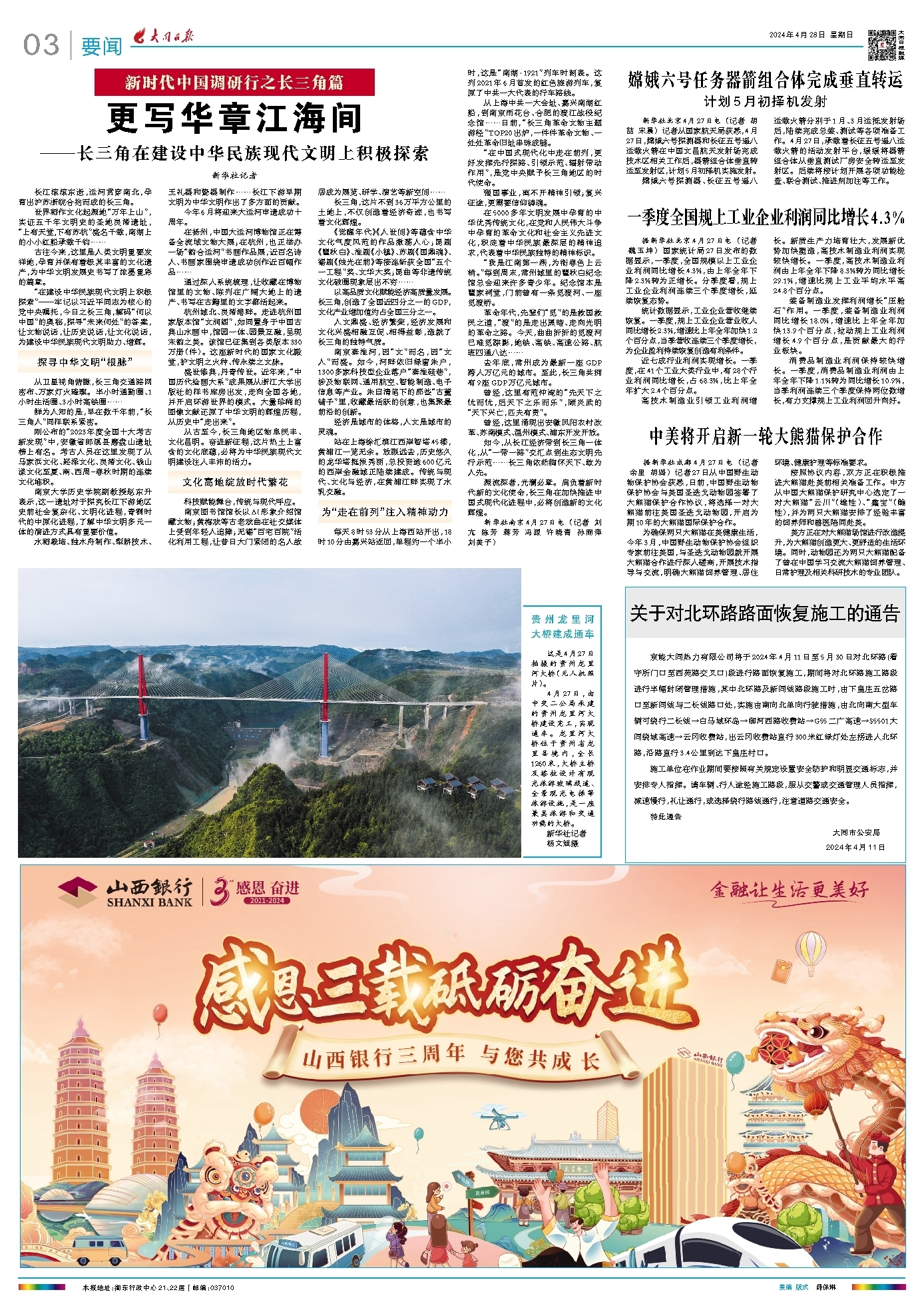 装备制造业发挥利润增长“压舱石”作用。一季度,装备制造业利润同比增长18.0%,增速比上年全年加快13.9个百分点,拉动规上工业利润增长4.9个百分点,是贡献最大的行业板块。