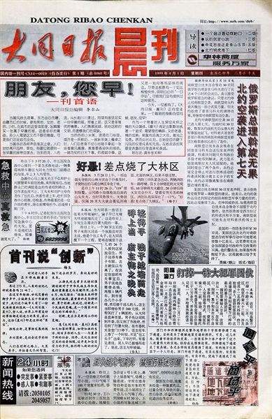 在报纸的经营发展上,大同日报厚积薄发、硕果累累。1999年4月1日,将原有五大周刊整合,成立《大同日报·晨刊》,2000年,大同日报扩版为对开12版,1月1日,《大同日报·生活》创刊,这也是大同乃至全省首份铜版纸印刷的生活服务类报纸。2000年9月9日,大同日报社、大同晚报社合并为大同报社,此后,大同日报在区域纸媒影响力达到峰值。