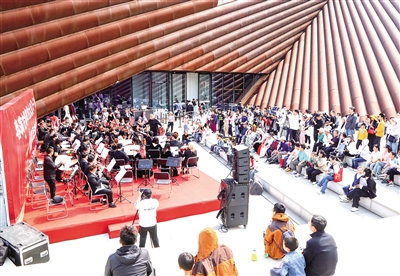 为了丰富“五一”假期市民和游客的文化生活,大同市美术馆开展多项主题展览和各类音乐、电影相关活动,推出了一系列文创互动体验项目,引导市民、游客感受艺术之美,乐享艺术假日。图为市歌舞剧院携手市美术馆在“五一”期间演奏交响乐。 本报记者 韩堃摄