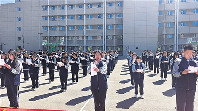 是日上午,大同财校师生齐聚操场,拿起手中的笔,在印有“不负韶华 读书正当时”的红色横幅上郑重地签上自己的名字,开启阅读之旅。之后,全体学生齐声诵读经典名篇《青春》。“以青春之我,创建青春之家庭,青春之国家,青春之民族……”激昂的文字,豪迈的气概,激荡在每一位财校学子的心中,指引青年学子担起时代重任,勇于进取,唱响新时代的青春之歌。
