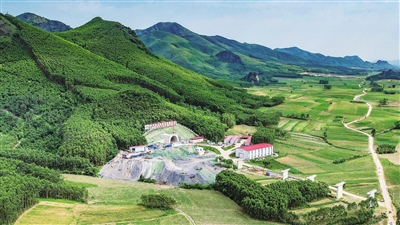 这是5月14日拍摄的广西柳梧铁路六绵山隧道(无人机照片)。