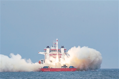 5月29日16时12分,我国太原卫星发射中心在山东附近海域成功发射谷神星一号海射型遥二运载火箭,搭载发射的天启星座25星-28星顺利进入预定轨道,飞行试验任务获得圆满成功。 新华社发 李超摄