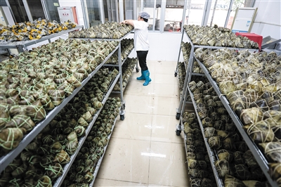 在端午节到来之际,海南定安县的粽子加工厂内一片繁忙景象。作为获得国家地理标志的美食名片之一,海南定安县粽子深受消费者喜爱,产品远销全国各地,年销售额超亿元。从小食品到大产业,定安粽子在当地推动乡村振兴、发展县域经济的过程中发挥了重要作用。 新华社记者 张丽芸摄