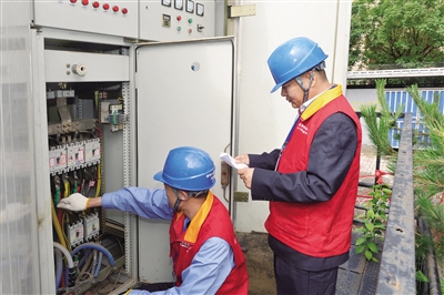 6月7日,一年一度的高考拉开帷幕。国网大同供电公司平城区供电中心全力做好高考保电工作,为广大学子安心应考提供可靠保障。图为在大同一中考点,工作人员正在检查变电设备。 本报记者 戎禹仁摄