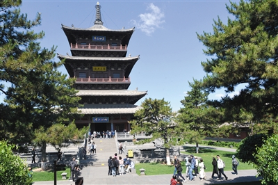 端午假期,大同成了旅游热门“打卡地”。图为在华严寺景区参观的游客络绎不绝。 本报记者 戎禹仁摄