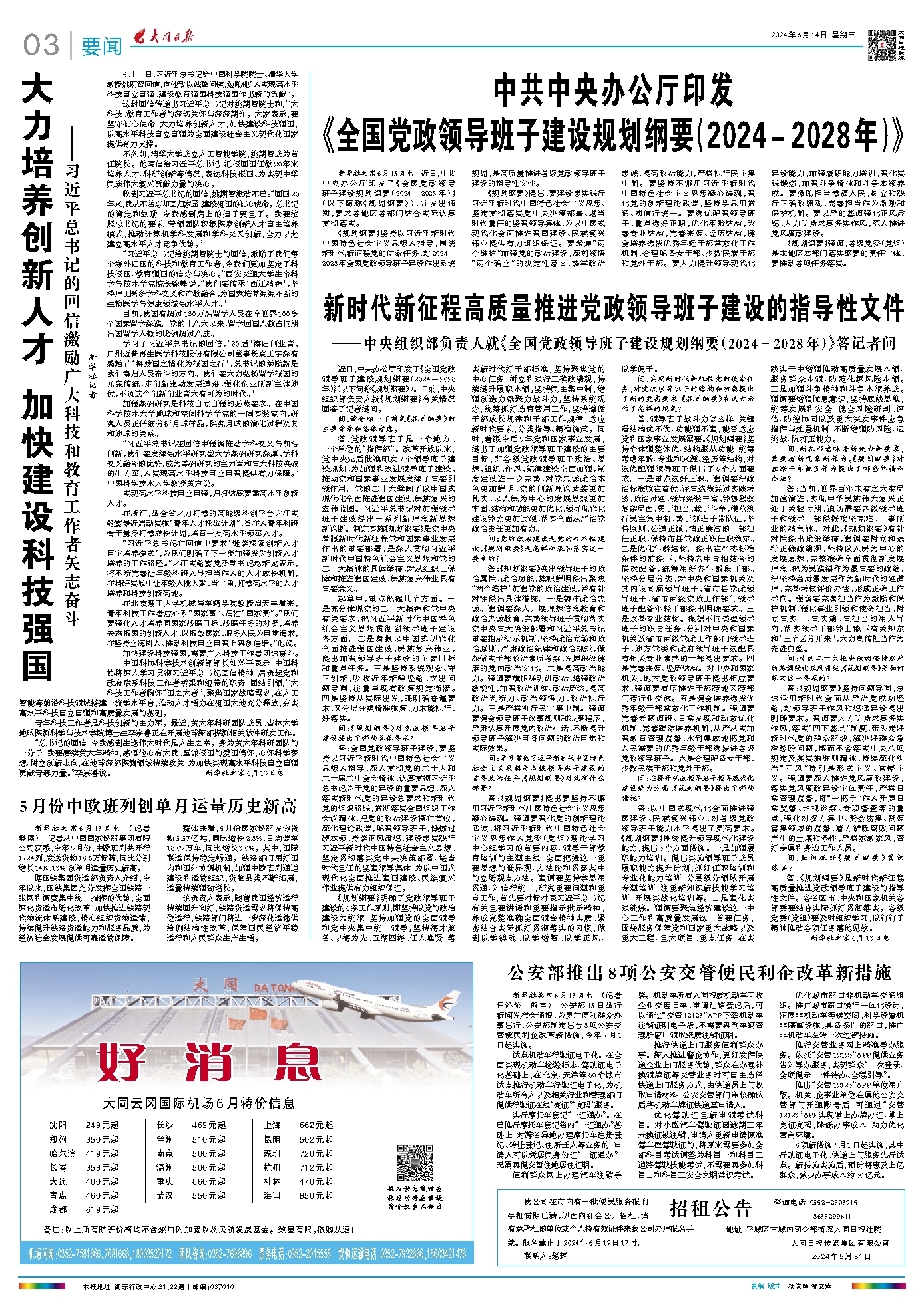 ~~~—中央组织部负责人就《全国党政领导班子建设规划纲要(2024-2028年)》答记者问