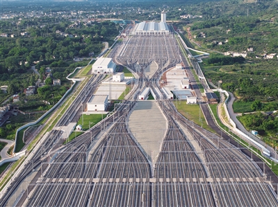 俯瞰天府动车所(6月11日摄,无人机照片)。