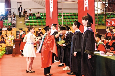 之后,学位授予仪式正式开始。握手、拨穗、授证……一缕缕流苏自右侧拨向左侧,一张张证书自老师们手中传递至学子们手中,饱含学校对学子们的殷殷期望。本科毕业生代表、研究生毕业生代表分别发言,分享他们的学习生活,表达对母校的感恩、眷恋与不舍。