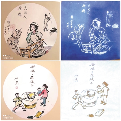 非遗以合适的方式打开,年轻人就会饶有兴趣。多年来,山西大同大学美术学院教师朱锦不仅在课堂教学中向学生传习大同扎染之美,而且在府文庙等不同的“非遗体验、趣味DIY”研学体验活动中向各地游客普及扎染文化。因为在她看来,蓝底白花的布面上,总是给人以宁静高雅的艺术之感。这就是大同服饰文化的独特魅力。多年来,朱锦涉猎广泛,尤其在蜡染、扎染工艺上不断深挖、不断创新。看过朱锦作品的人不难发现,她将美术创作中的光影效果与透视关系完美融合,不仅仅描绘出花鸟鱼虫等传统图案,更多的是将绘画技巧融入创作中,通过魏碑文字、云冈佛像、飞天壁画等大同元素表达扎染工艺作品内涵。在朱锦的带领下,许多大同大学相关专业的学生加入到艺术创作中,完成了一件件极具大同韵味的实习作品。朱锦说:“我想将这种创作理念带给更多的手工艺学习者、爱好者,让大同文创深入年轻人的心中。”