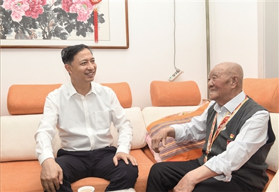 今年95岁的刘祯是新中国成立前入党的老党员,已有76年党龄,曾参加过抗美援朝战争。在刘祯家中,卢东亮与老人忆往昔峥嵘岁月,话今朝改革发展。看到老人虽年事已高,但精神矍铄,卢东亮十分欣慰,感谢他为党和人民事业作出的贡献,祝福老人健康长寿、生活幸福。看到老人在各个历史时期获得的军功章和荣誉勋章,卢东亮感慨地说,革命前辈抛头颅、洒热血,为中华民族独立和伟大复兴立下了不朽功勋,是党百年光辉历程的参与者、奋斗者、见证者,没有他们曾经的艰苦奋斗,就没有我们今天的幸福生活。我们要铭记老党员的历史功绩,弘扬他们的好传统、好作风,牢记初心使命,传承革命精神,推动党的事业薪火相传。