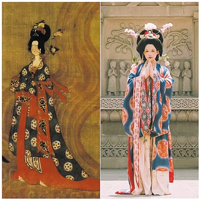 从郝雨的短视频不难看出,她在宣传大同文化上,是花了很大心思的,视频的片头和片名很有意思,“曾经的海枯石烂,是我们关于时间最久远的想象,所以即使在有纸张的年代,还是有很多人把记忆刻在石头上,随时间穿梭......”这是视频片头的独白,她对记者说,云冈石窟记录下的是1500年前的记忆,也将会一直流传下去,因此她把视频称为云冈石窟千年的诉说。视频中的古装造型也非常抓人眼球,“这个妆造出自晚唐壁画供养人形象,视频中原型复刻,之所以这样设计,首先,由于在云冈石窟景区内,有一块巨石上刻着‘中国由此迈向大唐’,我认为文化是一脉相承的。其次,我非常喜欢汉服复原及妆造,会翻阅古籍研究,尤其是跟大同有关的北魏史。”郝雨说。