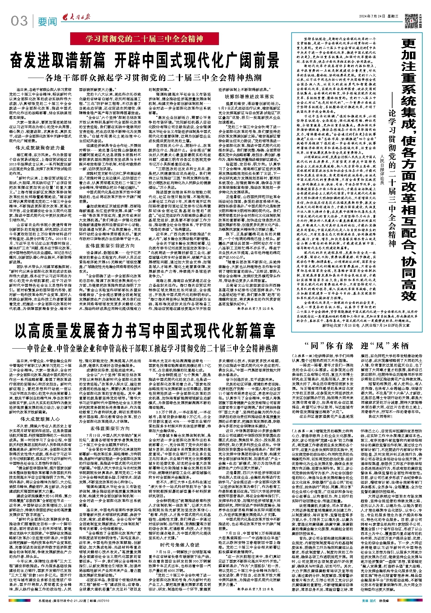 (上接第一版)增强党员的凝聚力和向心力,营造积极向上的企业文化氛围。其次,该公司坚持“党建+业务”的工作模式,将党建工作渗透到业务发展的各个环节,在重大业务决策和项目实施中,充分发挥党委的政治核心作用和党员的先锋模范作用,切实将党的政治优势、组织优势转化为企业发展优势,确保业务发展方向正确、经营决策科学。第三,该公司党委始终恪守为客户、为社会创造价值的初心,缔造与业务发展相融合的企业文化体系,积极履行“企业公民”的社会责任,始终践行“同创、同赢、同分享”的企业核心价值观,广泛组织和参与社会公益事业,以向善而为、向上而行的实际行动回馈社会、传递正能量。