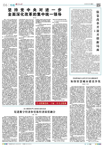 坚持党中央对进一步 全面深化改革的集中统一领导