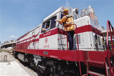 近期,上海持续高温天气。在中国铁路上海局集团有限公司上海站运转车间,调车员冒着高温坚守岗位,确保暑运列车运行安全。 新华社发 (田益铭摄)