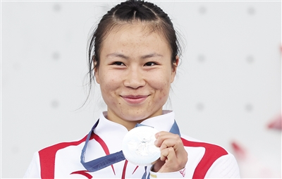 8月7日,在巴黎奥运会攀岩女子速度赛比赛中,中国选手邓丽娟获得银牌。图为邓丽娟在颁奖仪式上。 新华社记者 高静摄