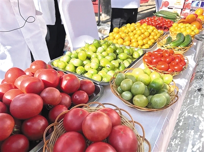 绿色的青口蜜、黑色的黑玫瑰、红色的多丽……展位上,品种多样的西红柿让与会人员大饱口福。“很开心能够参加这次大会。”阳高县火山现代农业发展有限公司技术顾问王娟说,“希望通过此次大会,让更多的人知道我们‘阳高红’西红柿,让‘阳高红’走向全国。”