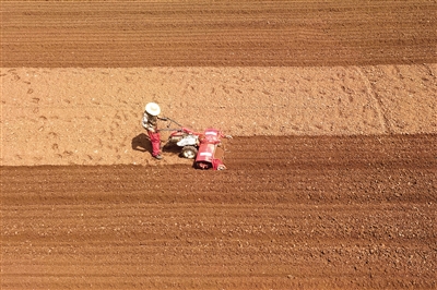 图为8月21日,农民在河南省济源市承留镇种子产业园整理土地。