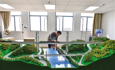 8月29日,学生在贵州大学省部共建公共大数据国家重点实验室调试桥梁加速度振动传感器。