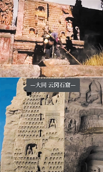 头戴凤翅紫金冠,身穿黄金锁子甲;脚踏藕丝步云履,手拿如意金箍棒,“悟空”穿梭在一个充满东方魔幻色彩的世界中,玩家在其中体验到了丰富的剧情、紧张的战斗以及精美的视觉和音效设计。有网友发现,游戏中的古刹、古塔、牌楼、石窟、石刻、雕塑等大多取材于真实的中国古建筑,这是通过3D扫描真实世界的寺庙、佛像、森林、岩石等制作而成,其中云冈石窟洞窟雕刻被高度还原,让玩家在游戏中仿佛身临其境走进真实的云冈石窟。