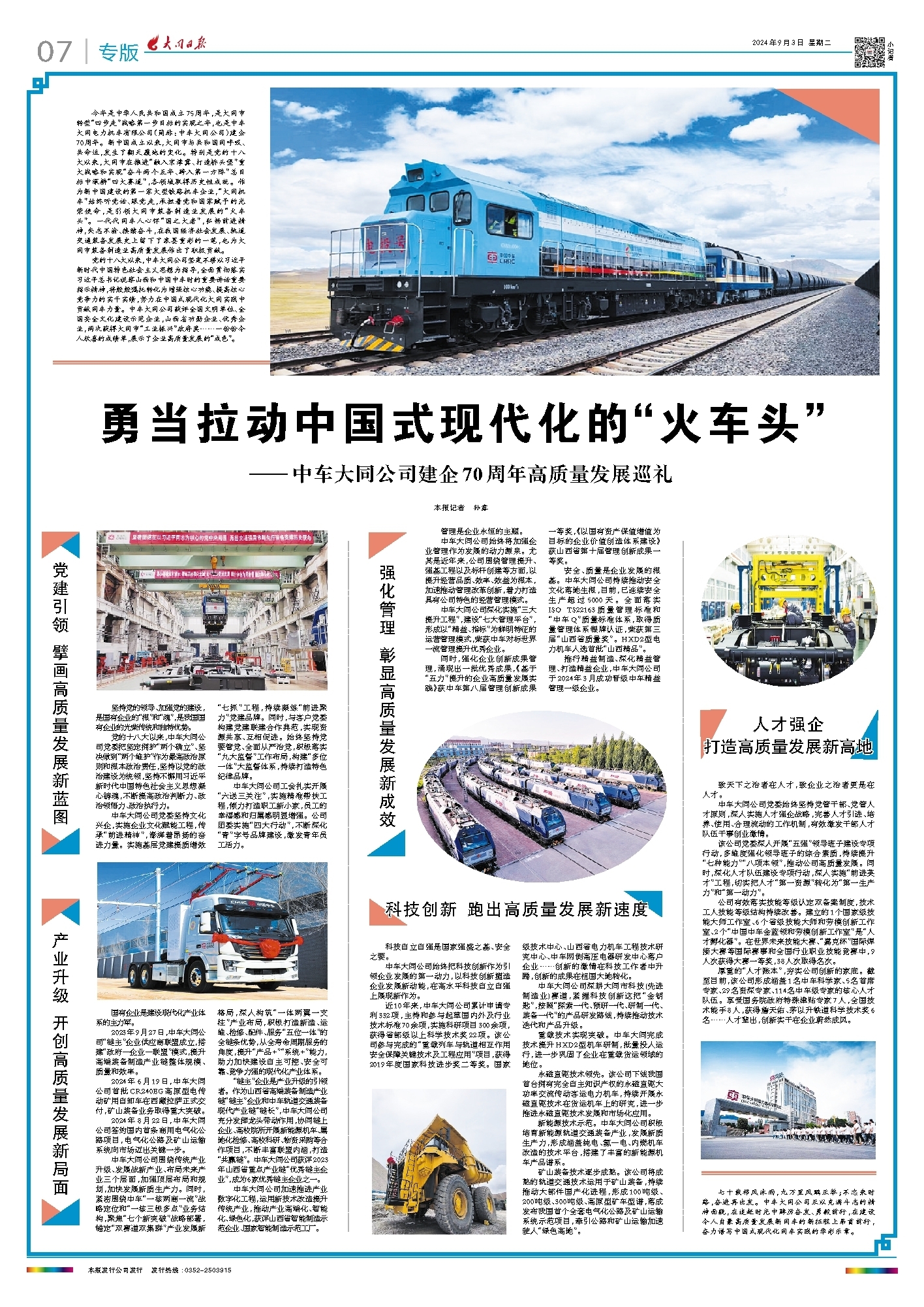 中车大同公司始终把科技创新作为引领企业发展的第一动力,以科技创新塑造企业发展新动能,在高水平科技自立自强上展现新作为。