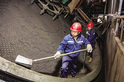 连日来,山西同德兴华特钢有限公司集中开展运维检修、翻新工作,各分厂检修人员以高度负责的态度和精湛扎实的技术及时有效处理各种设备问题,显著提升了设备的可靠性和安全性,为下半年的生产打下坚实基础,为生产效率与质量双提升提供了有力保障。图为炼铁厂工作人员正在清理造球机内部。