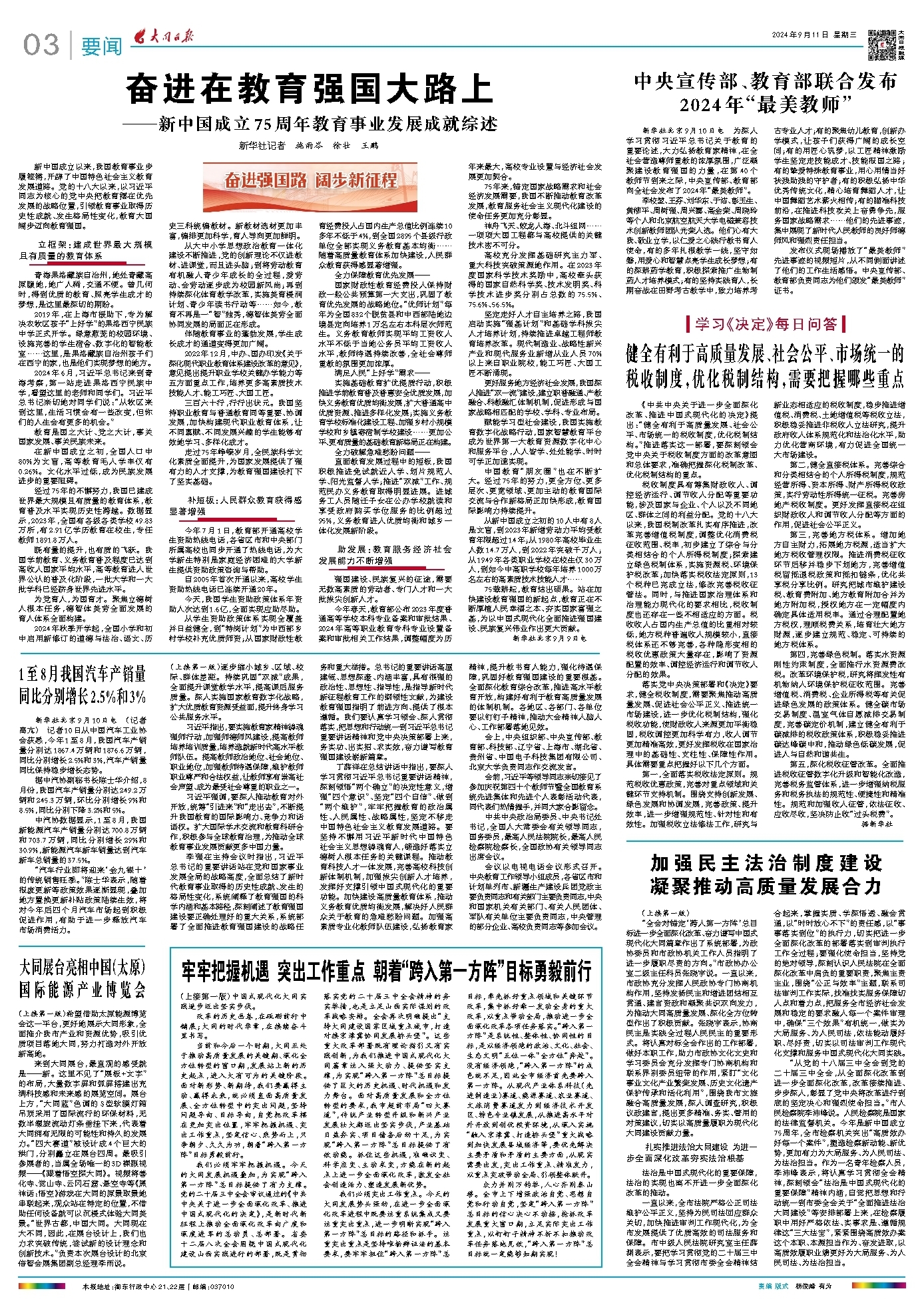 紧紧围绕立德树人根本任务 朝着建成教育强国战略目标扎实迈进