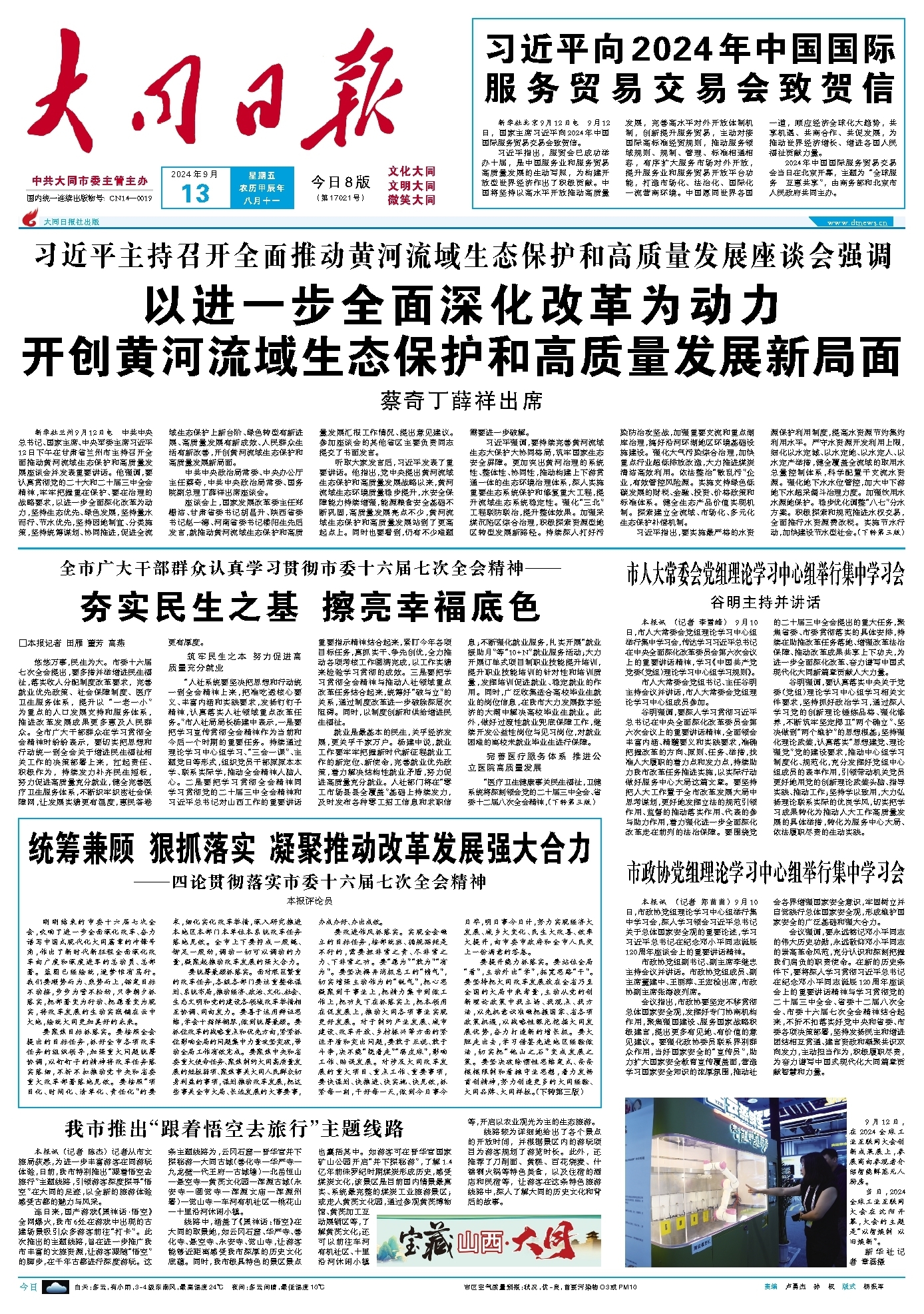 以进一步全面深化改革为动力 开创黄河流域生态保护和高质量发展新局面