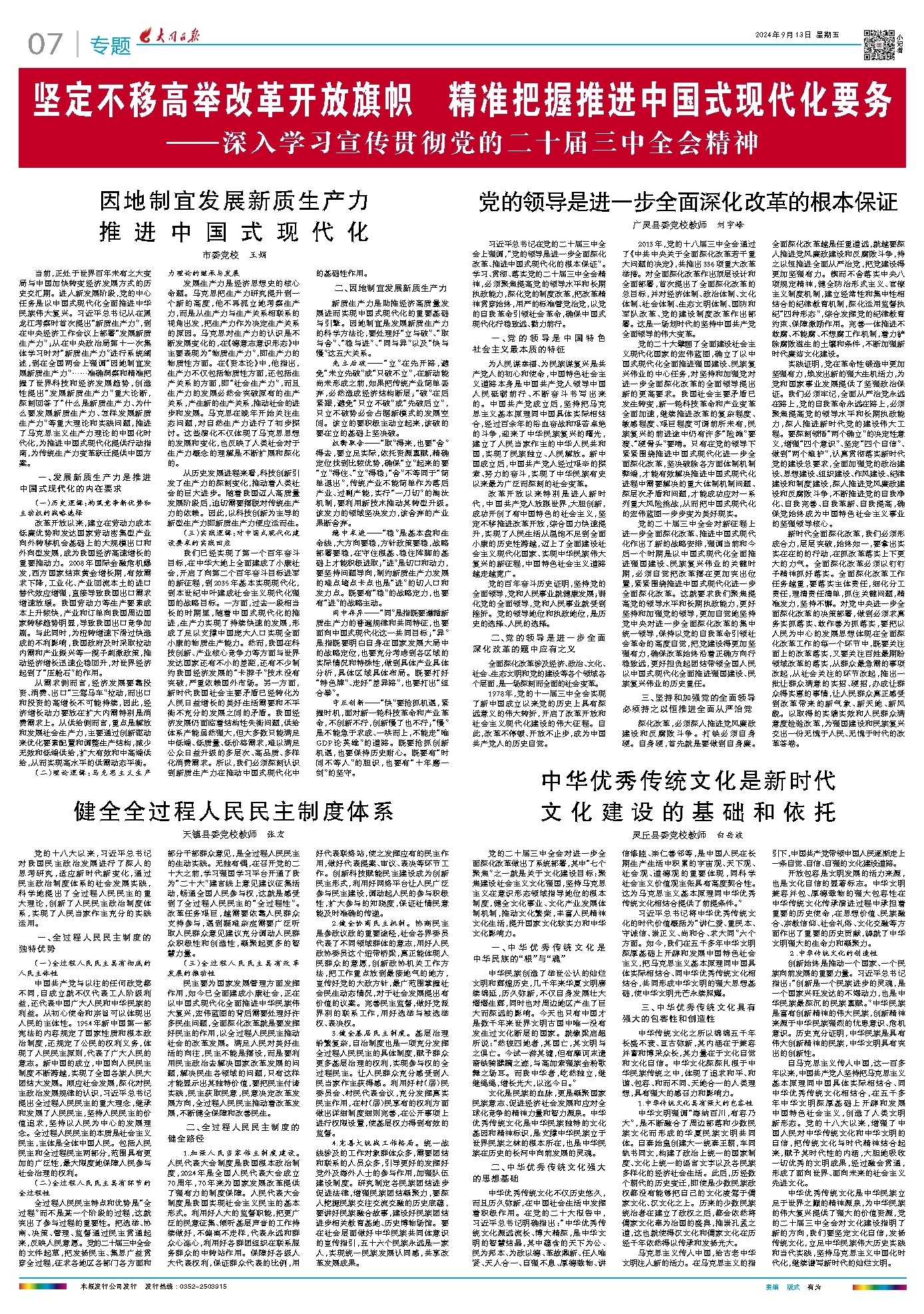 因地制宜发展新质生产力 推进中国式现代化