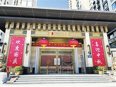 除此之外,小区物业在小区挂起国旗、大红灯笼,干净整洁的小区一派红红火火的节日气氛。