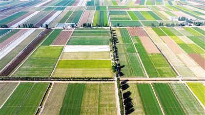金秋十月,塞上江南宁夏大地一片丰收景象。水稻、玉米、冷凉蔬菜等粮食作物、特色农作物,在碧水蓝天的映衬下,呈现出五彩斑斓的大地丰收色彩,一幅幅壮美的丰收图在田野间展现开来。这是9月23日拍摄的宁夏农垦连湖农场(无人机照片)。 新华社记者 杨植森摄