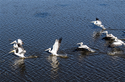 又到候鸟迁徙季。连日来,在大同桑干河国家湿地公园,一幅大自然的壮美盛宴正在上演,鹈鹕、灰鹤等候鸟带着对生命的执着与热爱从远方而来,在波光粼粼的河面上映衬出美丽的身影,让人不禁赞叹这一大自然赋予的无尽美好。 同影 摄