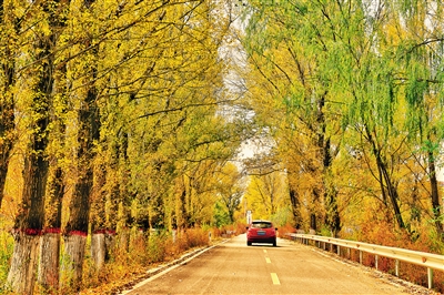 随着新一轮降温到来,我市进入最后赏秋季。10月19日,沿着长城一号旅游公路新荣区段,不时有或红或黄的浓烈色彩撞入眼帘,部分黄叶已开始随风飘落,乡间小道满眼黄叶碎成金,使道路变得色彩斑斓。