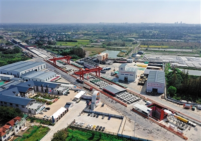 10月20日在上海拍摄的崇太长江隧道项目3号井(无人机照片)。