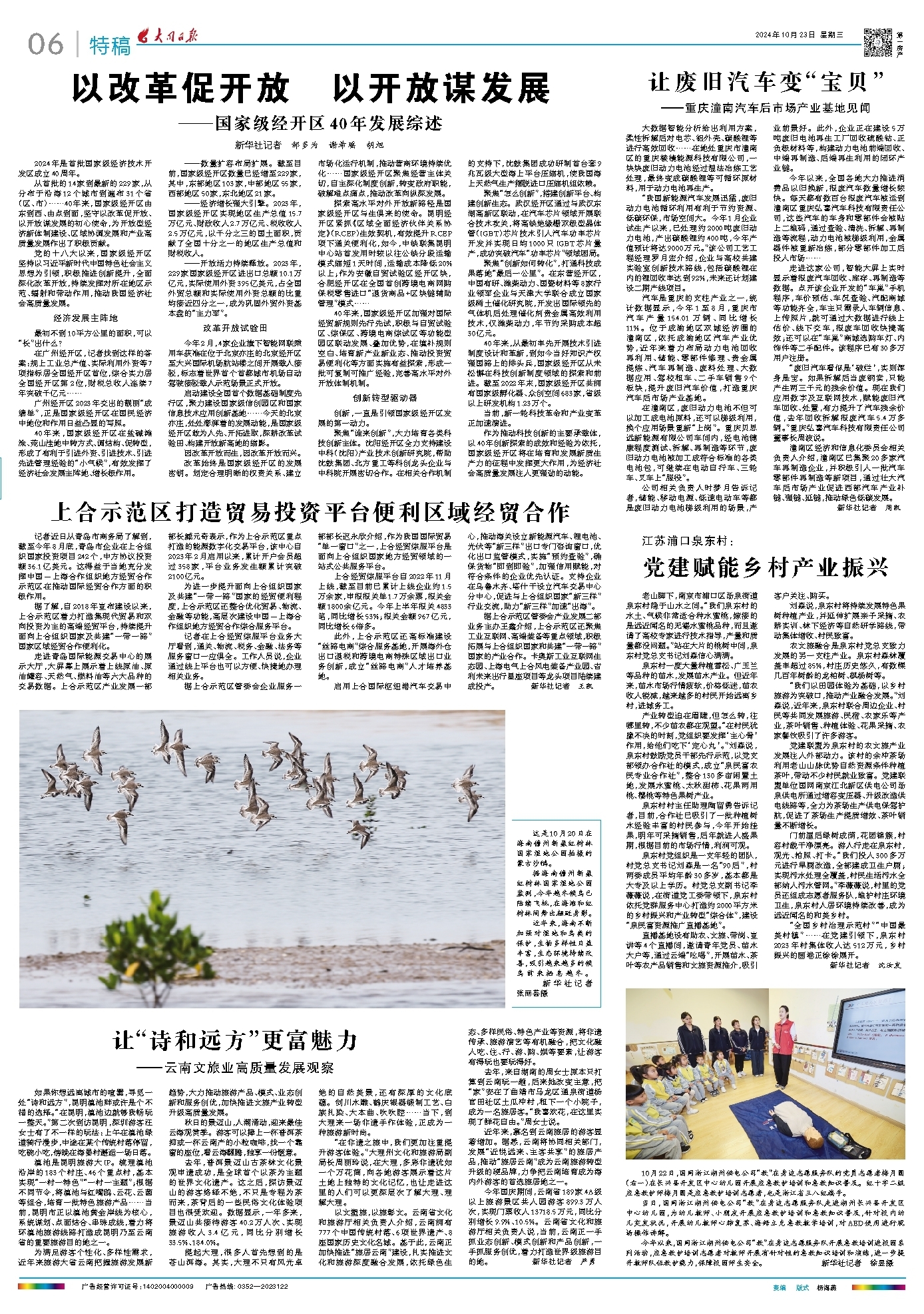 门前屋后绿树成荫,花团锦簇,村容村貌干净漂亮。游人行走在泉东村,观光、拍照、打卡。“我们投入300多万元进行旱厕改造,全部建成卫生户厕;实现污水处理全覆盖,村民生活污水全部纳入污水管网。”李薇薇说,村里的党员还组成志愿者服务队,维护村庄环境卫生,泉东村人居环境持续改善,成为远近闻名的和美乡村。