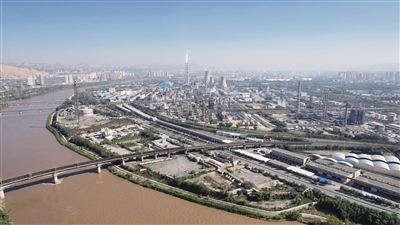 这是位于黄河岸边的兰州石化公司厂区(无人机照片,10月22日摄)。