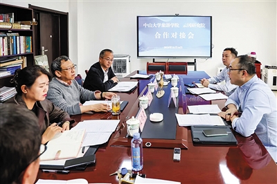 本报讯 (记者 赵小霞) 10月16日下午,云冈研究院与中山大学旅游学院召开合作对接会,就文化遗产数字化建设、旅游管理研究、人才培养以及院校互访等议题进行了深入交流。中山大学旅游学院副院长张骁鸣,院长助理梁增贤,云冈研究院院长杭侃,党委委员、副院长何建国,党委委员、文旅融合发展中心主任崔晓霞以及综合部部长赫福强参加会谈。