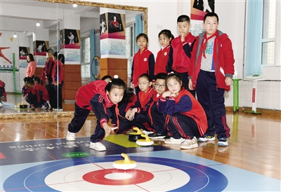 近年来,平城区各学校积极开展多元化的体育课程建设,完善“健康知识+基本运动技能+专项运动技能”体育教学模式,通过社团兴趣活动课设置学生喜爱的旱地冰壶、轮滑、击剑等课程,形成了体育课堂教学、课外体育活动、大课间、兴趣社团等多位一体的体育推广体系,让体育助力学生健康成长。图为平城区45校的学生们正在练习旱地冰壶。 本报记者 戎禹仁摄
