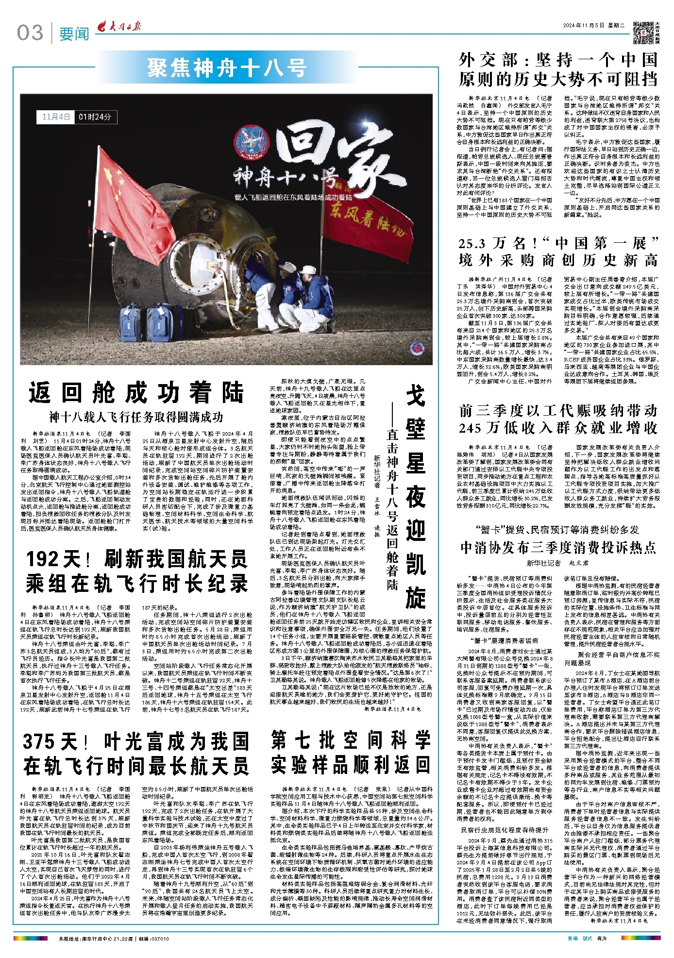 192天!刷新我国航天员 乘组在轨飞行时长纪录