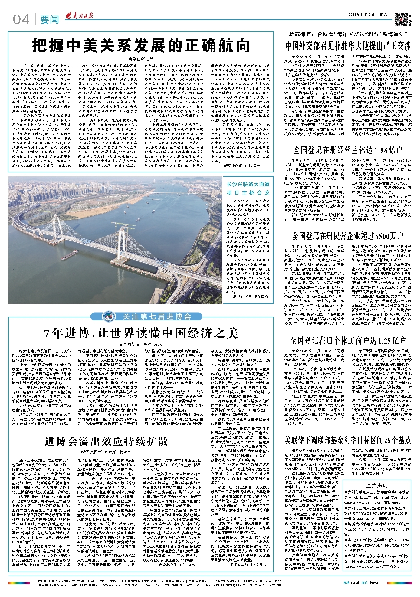 新设经营主体保持较好增长势头。前三季度,全国新设经营主体2069.6万户。其中,新设企业662.2万户,新设个体工商户1402.4万户,新设农民专业合作社5万户,多种经营主体均呈现稳定增长势头。