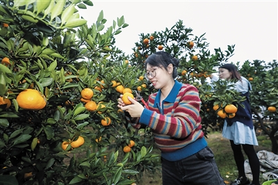 11月10日,在三都镇柑橘种植基地,游客采摘柑橘。三都镇柑橘种植面积达2.8万亩,总产量4.2万吨。近期,浙江省建德市三都镇柑橘、香榧、西红花和石斑鱼等特色产业喜迎丰收,前来采摘、购买的游客络绎不绝。近年来,建德市三都镇以农旅、文旅融合发展为定位,全力推进“乡村梦想家”人才项目,形成农户+村镇+企业的三级联动,促进农民、村集体双增收。 新华社记者 徐昱摄