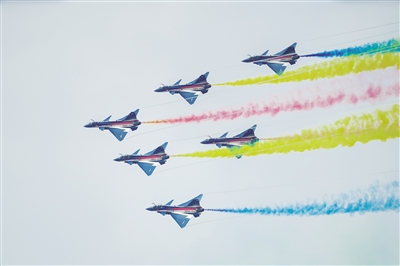 十一月十一日,空军八一飞行表演队在珠海进行适应性飞行训练。
